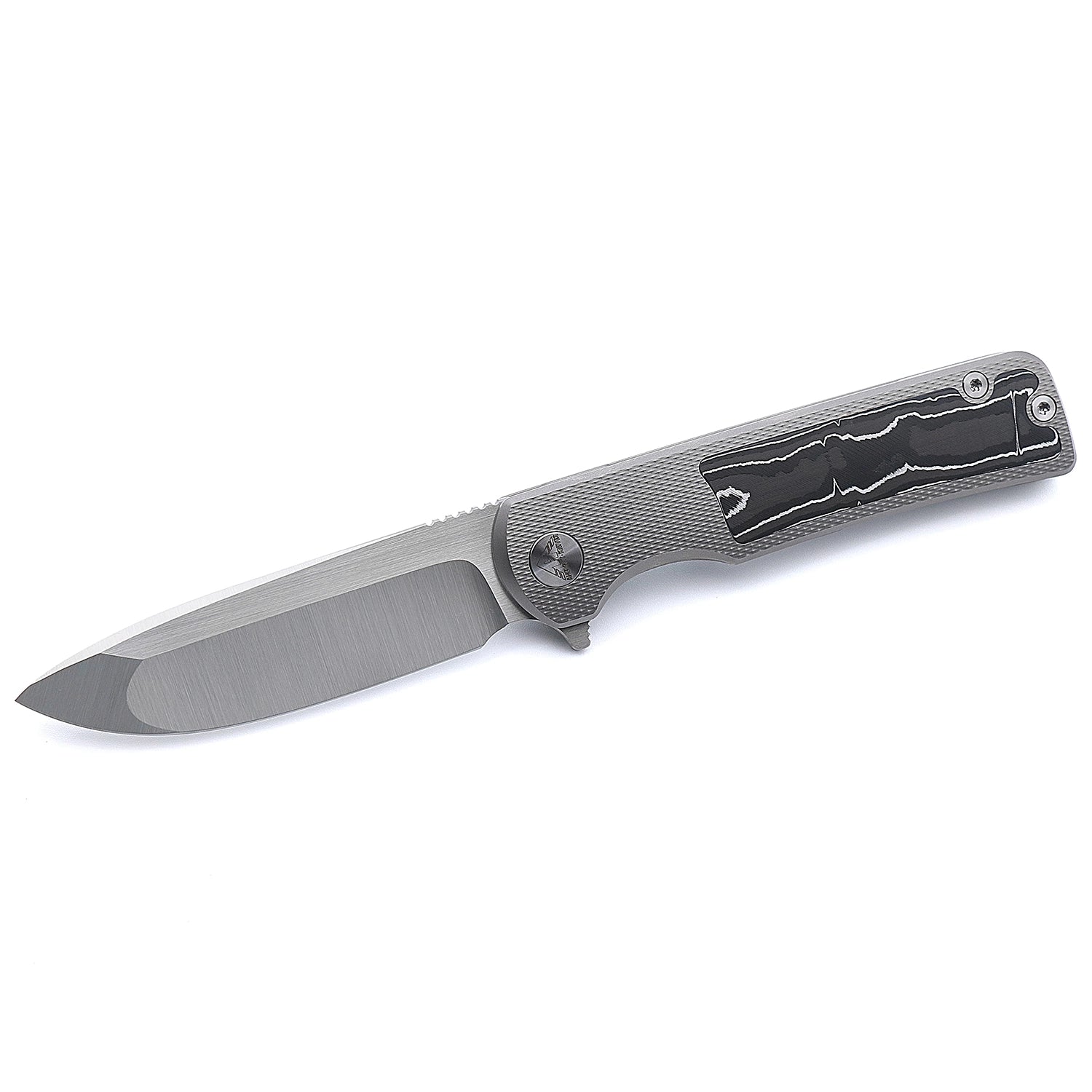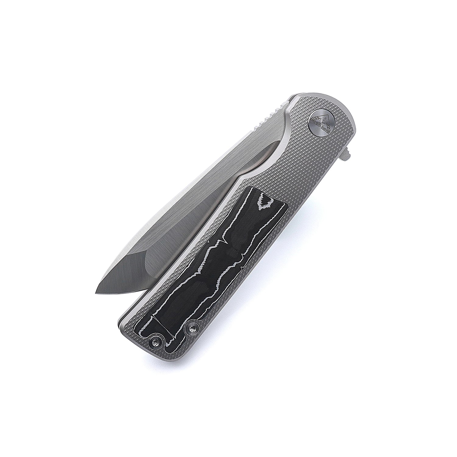 The handle features a premium blend of titanium and silver carbon fiber, delivering both strength and visual appeal while keeping weight low. With a smooth manual action and a tip-up pocket clip, the Kermu is as comfortable in your hand as it is in your pocket. Crafted with precision and purpose, it's a perfect choice for those who demand high-end performance from their EDC gear.