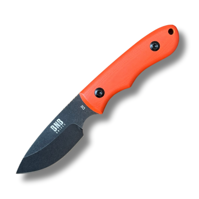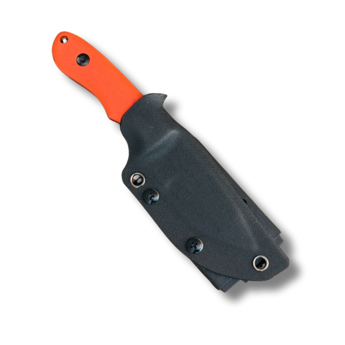 The Tac Hunter mini skinning knife is crafted for precision and durability, featuring a rugged D2 steel blade with an extended belly edge optimized for clean, efficient cuts. Its bevel compound grind and decorative spine jimping enhance control and accuracy. The polished full tang is encased in textured G10 handles with ergonomic finger grooves for a secure, comfortable grip. A lanyard hole adds versatility, while the included Kydex sheath with Tek-Lok system ensures reliable, hands-free carry. Backed by a lifetime guarantee, this knife is a dependable tool for serious hunters.