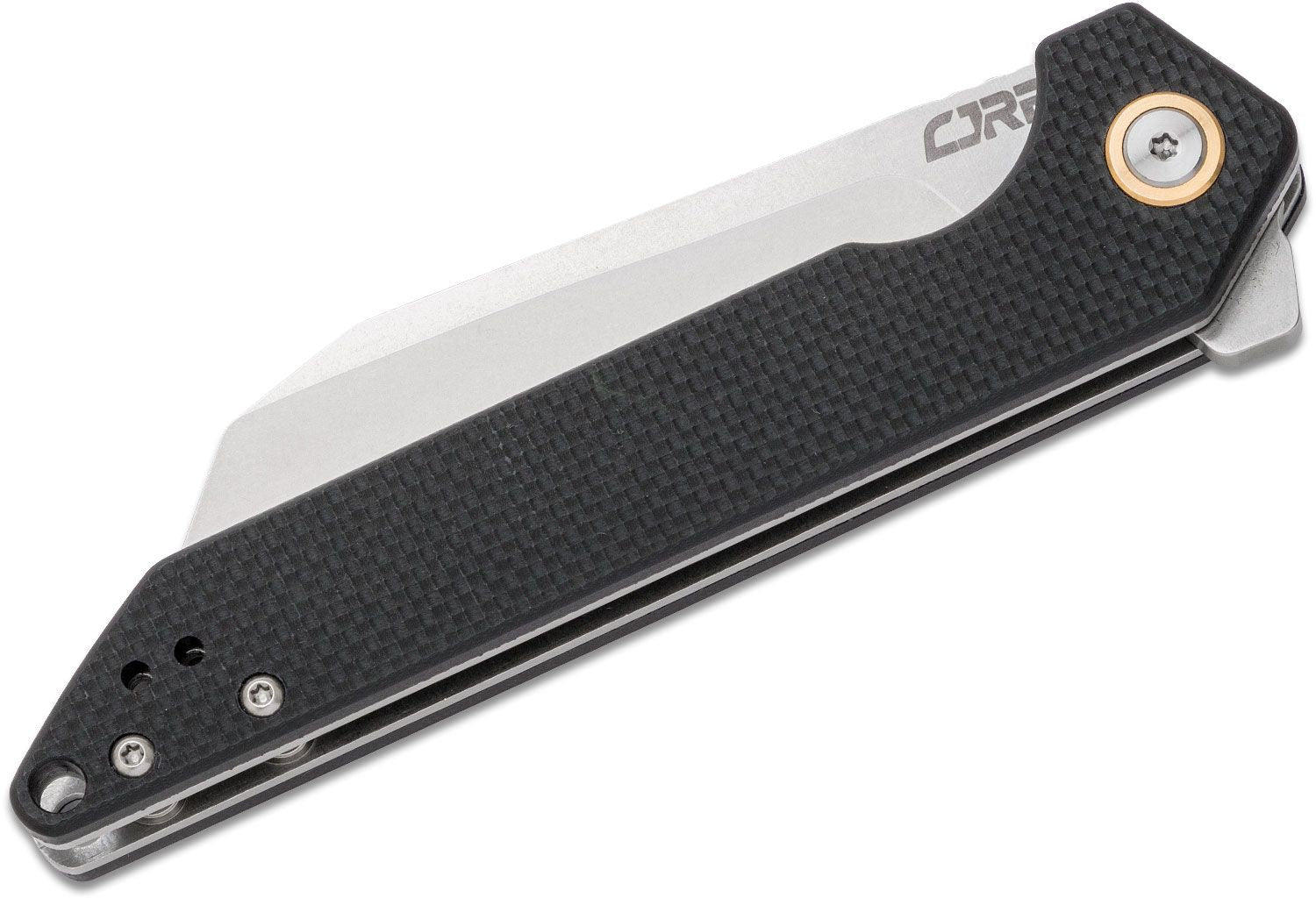 CJRB Cutlery Rampart Flipper Knife 3.5" Stonewashed Wharncliffe Blade, Carbon Fiber Handles, Liner Lock - J1907-CF