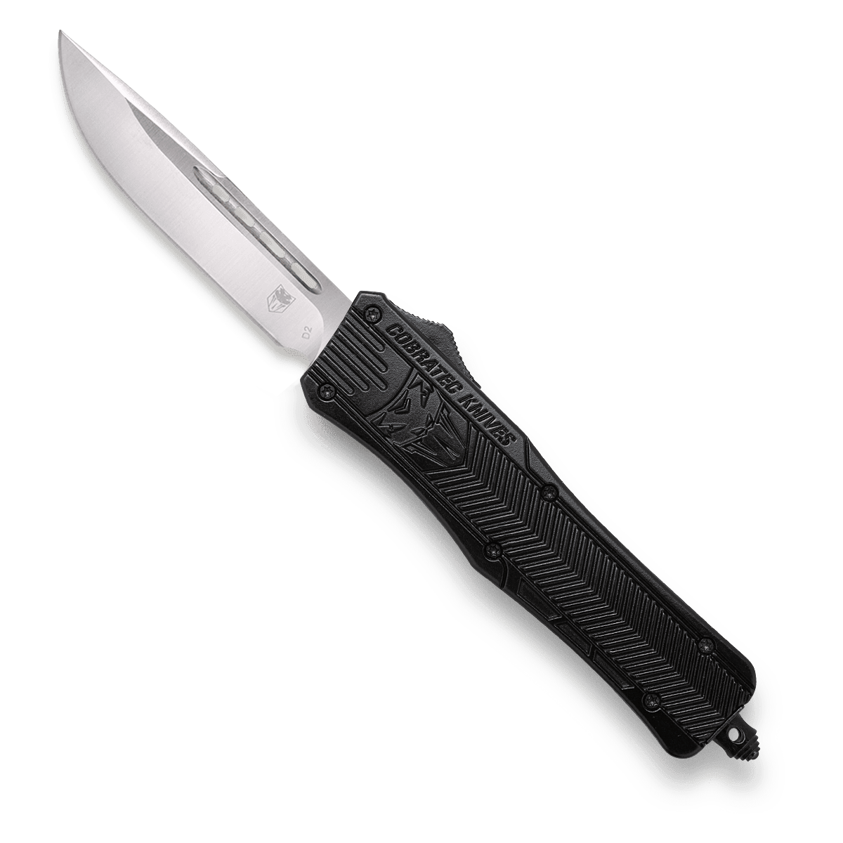 The CobraTec Medium CTK-1 Black is a precision-engineered dual-action OTF knife, ideal for everyday carry and general use. It features a durable 3-inch D2 steel drop point blade housed in a 5-inch high-grade aluminum alloy handle, combining strength with lightweight design. Ambidextrous functionality allows easy pocket clip placement on either side, enhancing user convenience. Equipped with a glass breaker and nylon sheath, this knife is built for versatility and emergency readiness. Weighing 6.7 ounces with an 8-inch total length, the CTK-1 is supported by CobraTec’s lifetime warranty, ensuring lasting reliability for professionals and enthusiasts alike.