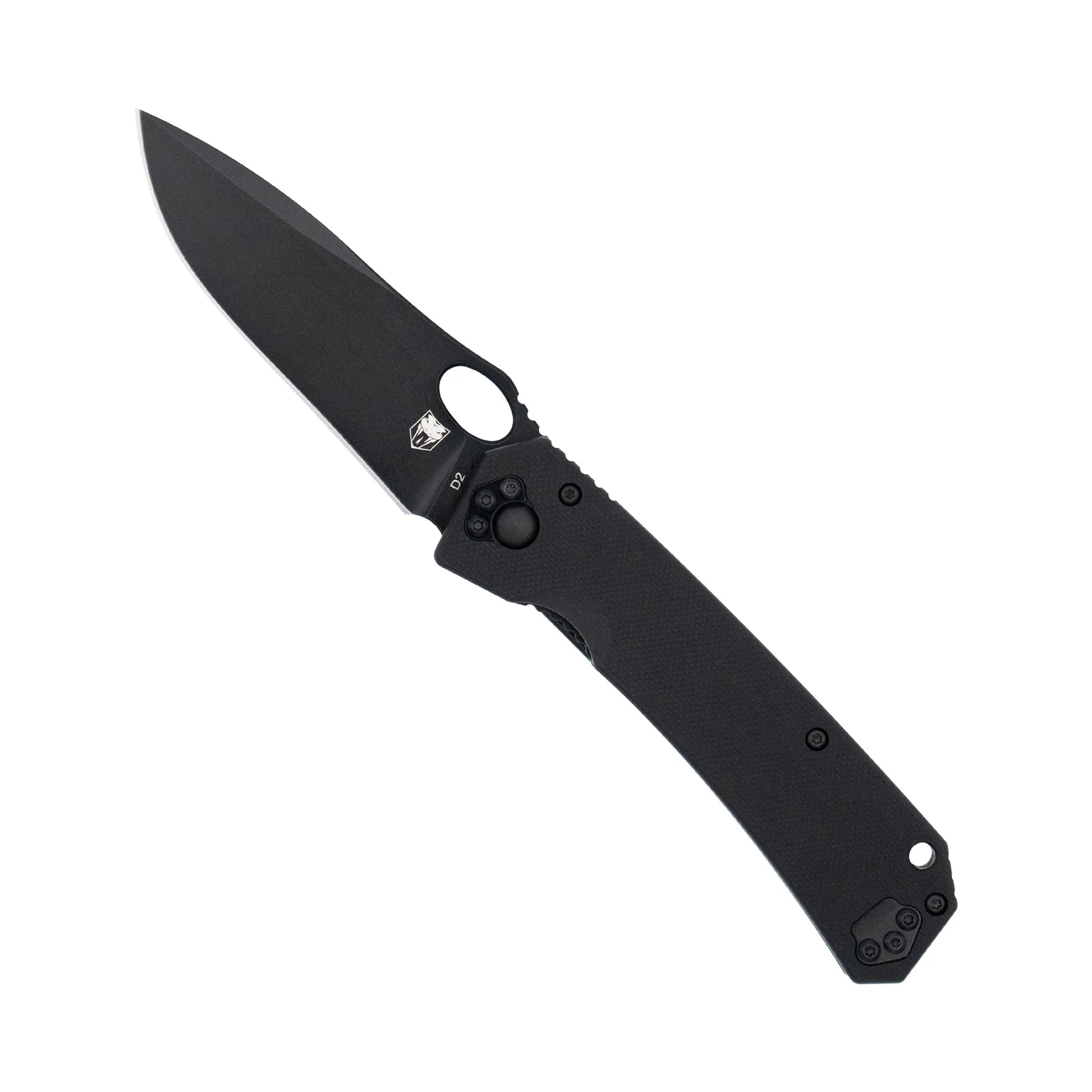 The CobraTec Knives Raven delivers expert-level performance with a black titanium-coated D2 blade known for outstanding hardness and edge retention. Its thumb hole-assisted opening allows quick, smooth deployment, essential for critical moments. The ergonomic G-10 textured scales provide secure, comfortable grip, while the CNC aluminum liner lock ensures robust stability and durability. Engineered for precision and reliability, the Raven is designed to perform flawlessly in demanding situations.