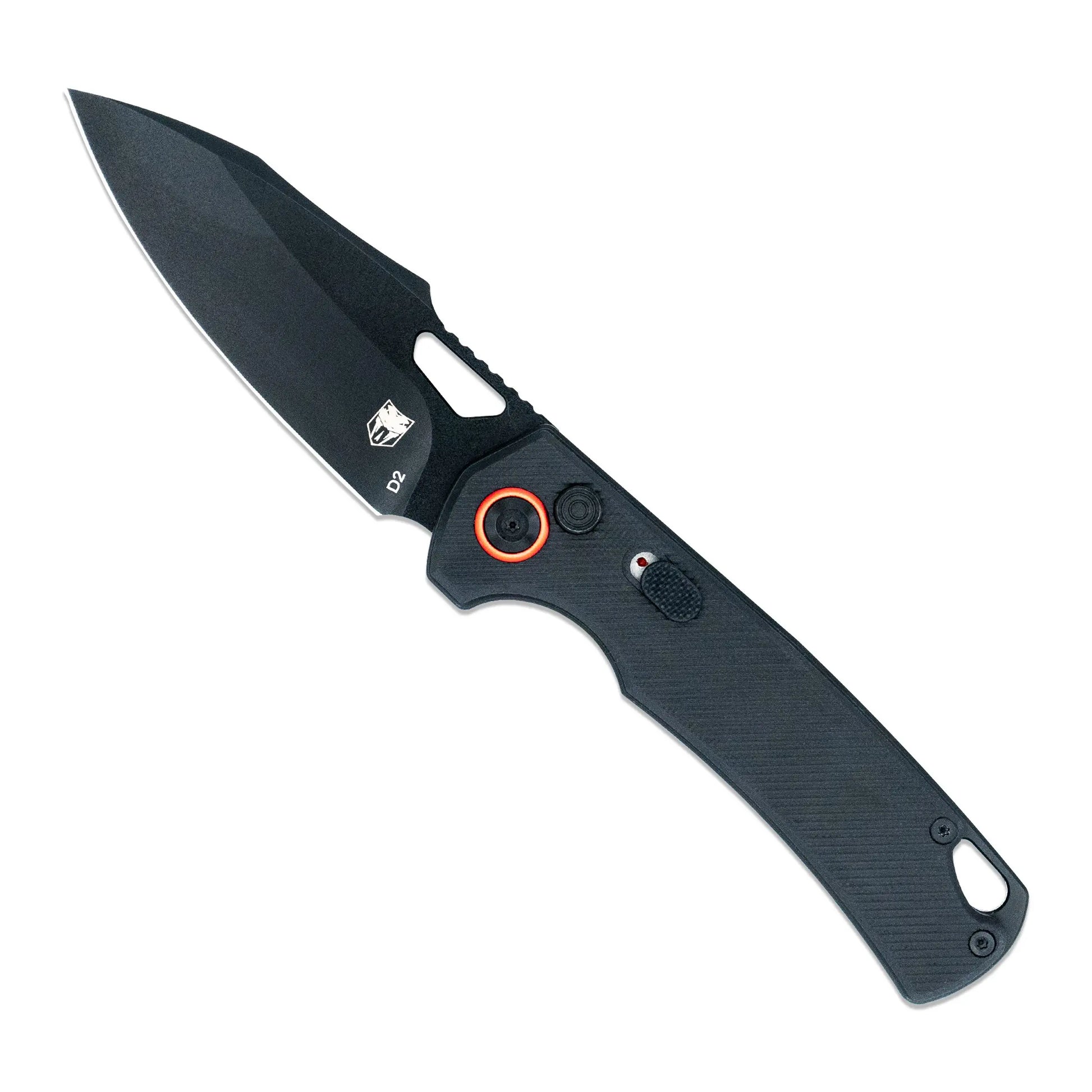 The Wolverines CNC handle liner wrapped in G-10 scales, not only provides a secure and comfortable grip but also boasts remarkable durability, ensuring it can withstand the rigors of everyday use and beyond. Paired with a sleek D2 steel blade, this knife is ready for everyday use.