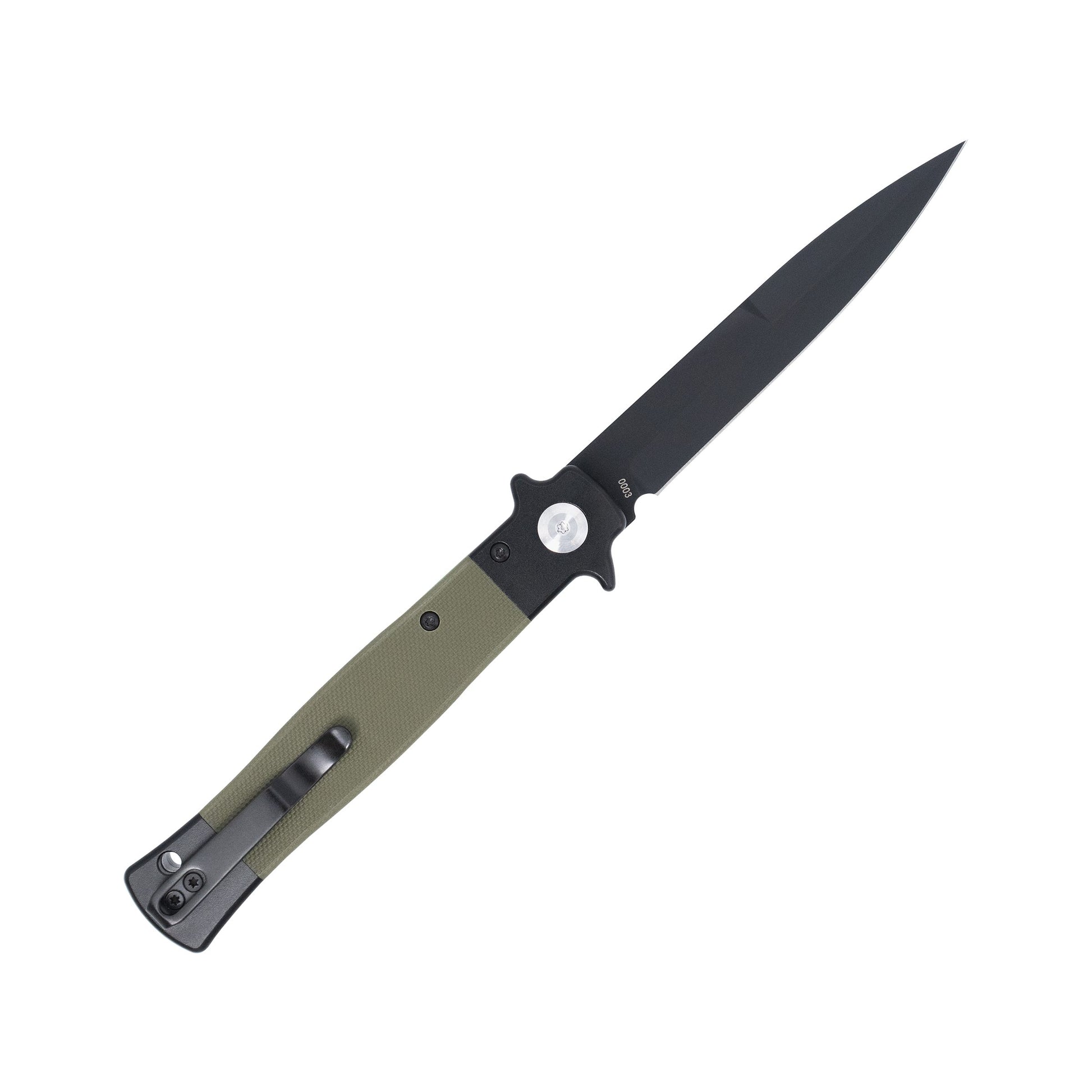 CobraTec Stiletto Button Lock OD Green/Black VG-10 Stainless Steel CTSTLBLG10ODGBLK