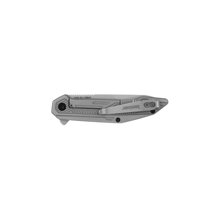 The Kershaw Terran is a sleek, all-steel assisted-opening folder built for dependable everyday performance with a touch of modern sophistication. Designed by Kershaw Originals, this knife features a 3.125-inch drop point blade crafted from 8Cr13MoV stainless steel, offering solid edge retention, easy maintenance, and a bead-blasted finish for a clean, matte aesthetic. The steel handle is contoured for comfort and durability, while detailed machining on the handle and glass-filled nylon backspacer adds unique texture and visual interest. The assisted opening mechanism paired with a flipper tab allows for smooth, one-handed deployment, and the frame lock provides solid, reliable blade lock-up during use. A reversible deep-carry pocket clip (right/left, tip-up) ensures discreet and flexible pocket carry. Though now discontinued, the Terran remains a standout for users who value minimalism, strength, and everyday utility—all in a slim, easy-to-carry profile.