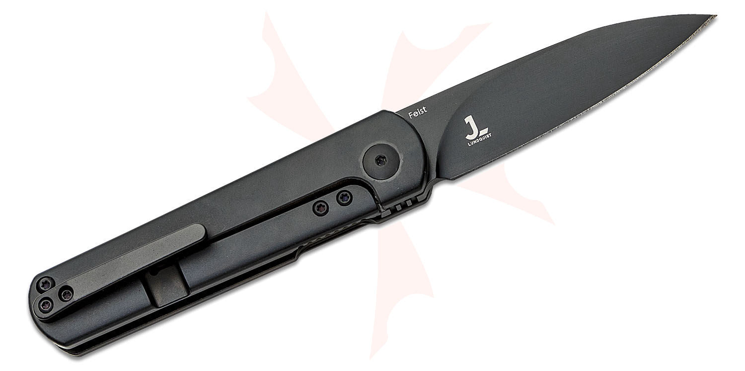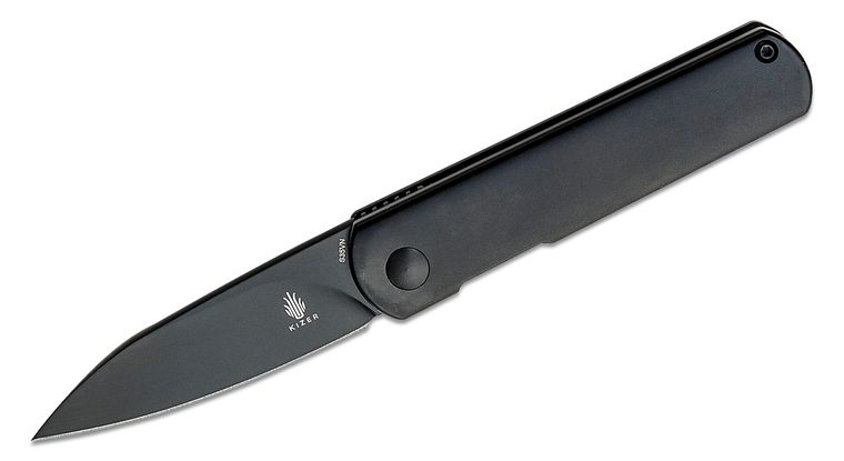 Kizer Justin Lundquist Feist Front Flipper, 2.8" S35VN Black Drop Point Blade, Black Titanium Handles