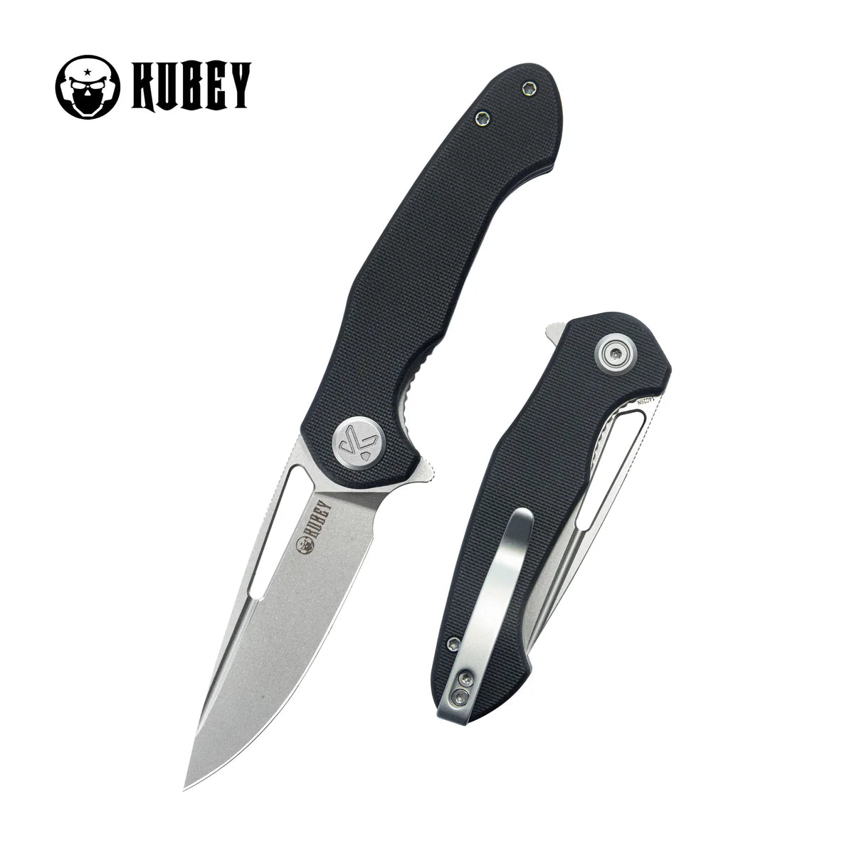 Kubey Dugu Liner Lock Folding Knife Black G10 Handle 2.91'' Beadblast 14C28N Blade KU210E
