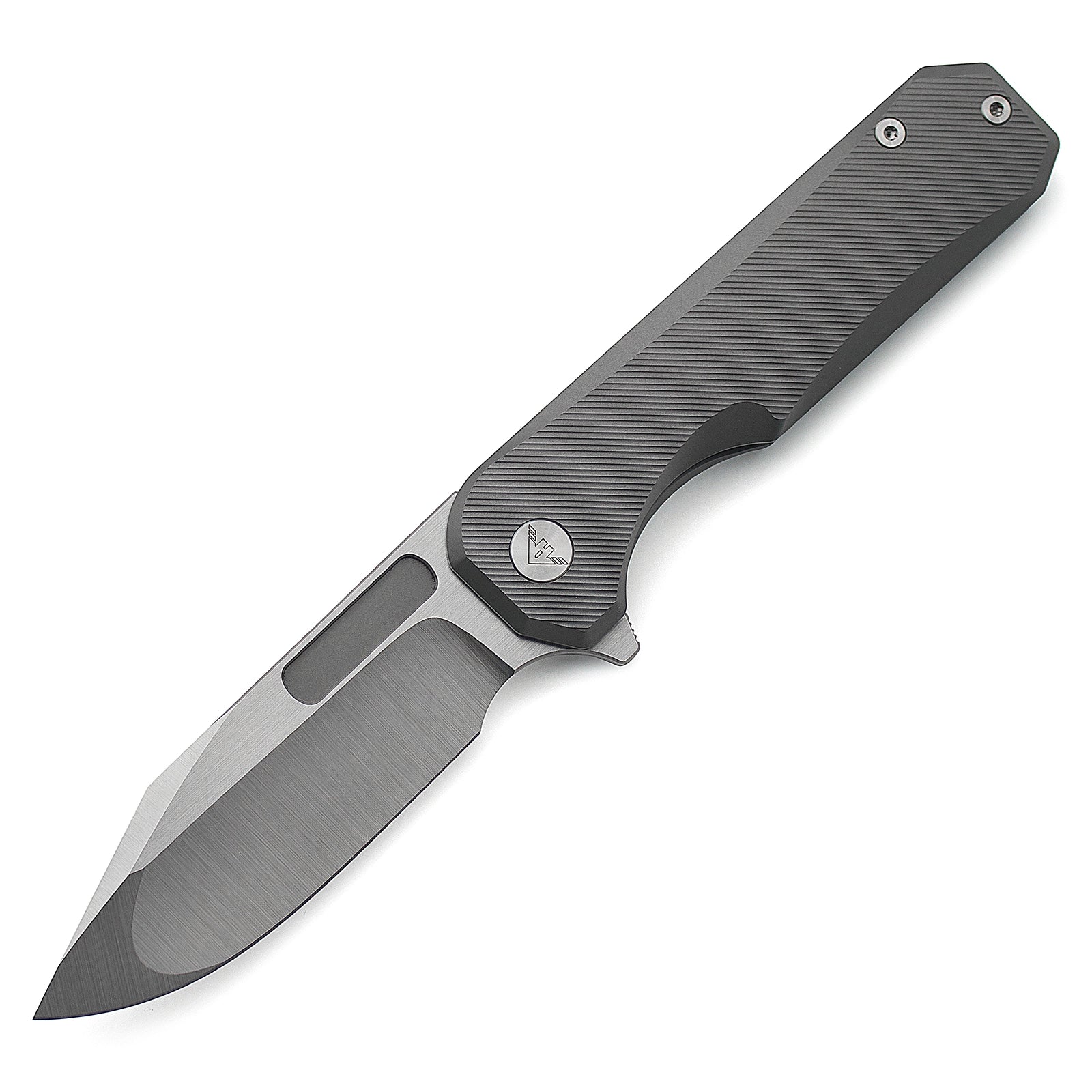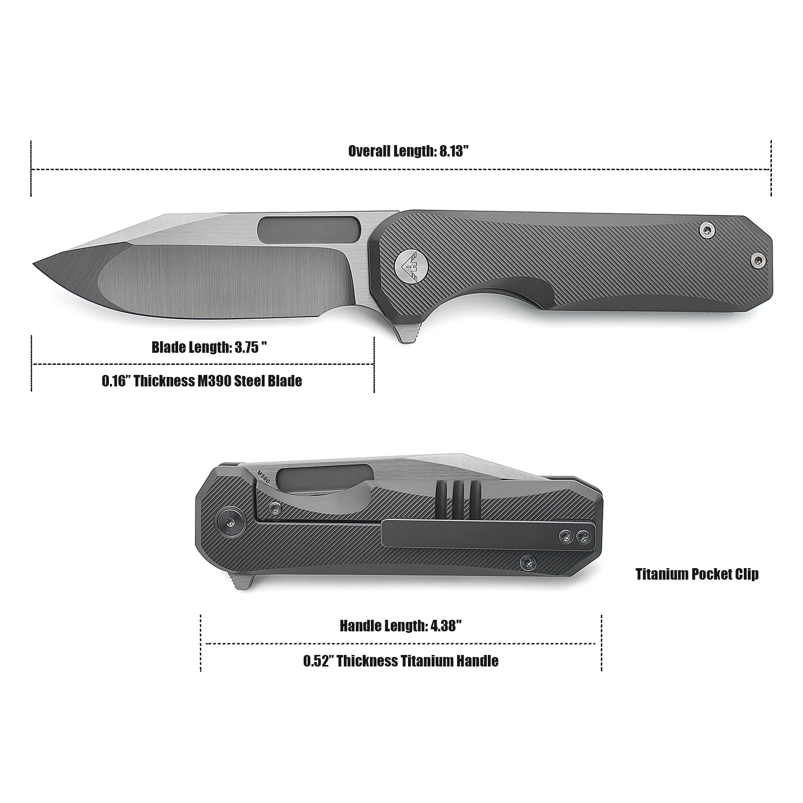 Ameight Knives Preyert II Flipper Folding Knife 3.75" Hand Hollow Ground Rubbed Satin M390 Blade Dark Grey Titanium Handle Survival Camping Pocket Knife