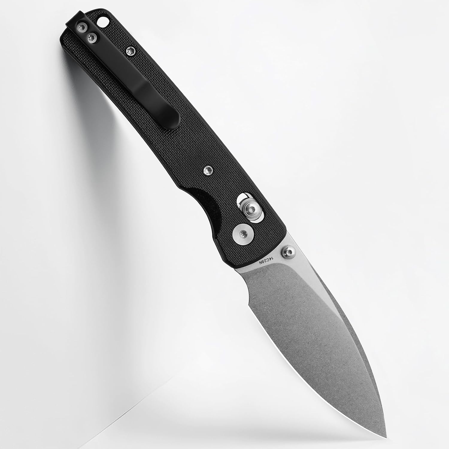 The Miguron Vakor is a versatile folding knife designed for daily use and built with premium materials. Featuring a stonewashed 3.125" 14C28N blade, ergonomic black G10 handle, and a smooth Axis lock, the Vakor delivers confidence, durability, and functionality in a sleek EDC profile. Dual thumb studs make for ambidextrous, fidget-friendly operation.
