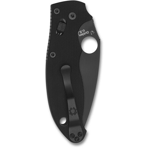 The Spyderco Manix 2 in all-black features a DLC-coated S30V steel blade with flat-ground precision and aggressive thumb jimping for enhanced control. It employs the Ball Bearing Lock system via a hardened free-floating bearing in a polymer cage, ensuring consistent, smooth, and secure lockup. The G-10 handle is complemented by scalloped internal liners that extend beyond the scales, adding additional grip texture. Designed for reliability and ergonomic handling, this knife excels in performance and tactical aesthetics.