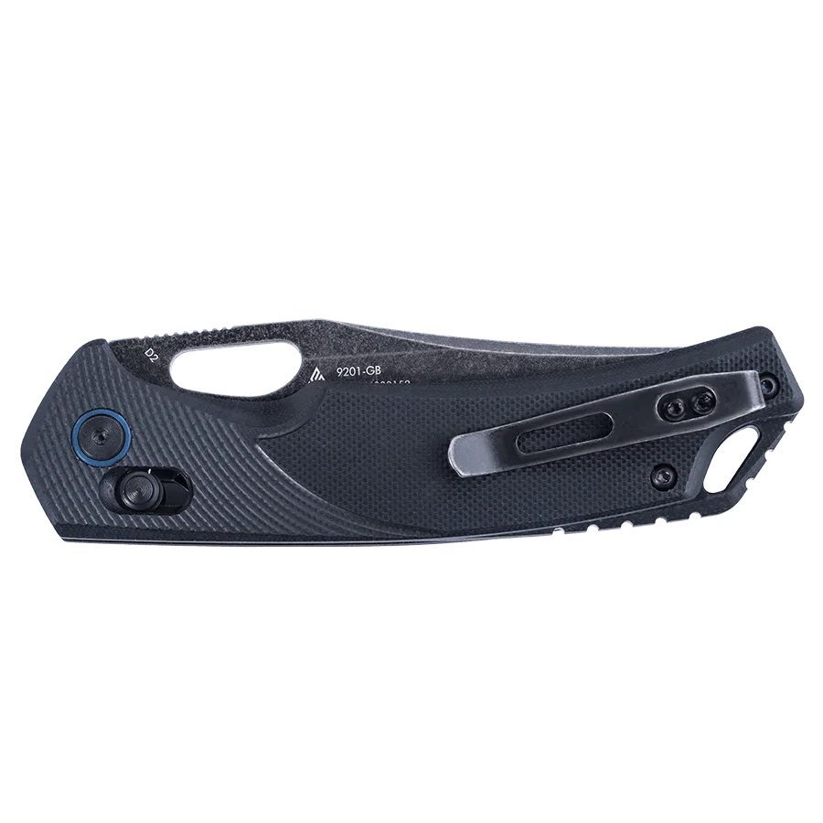 The Retriever 9201-GW is a durable folding knife designed for everyday carry and tough tasks. It features a 3.54-inch D2 steel clip point blade with a black stonewashed finish, providing excellent edge retention and strength. The G10 handle offers a secure grip, while the steel ball bearing pivot ensures smooth opening. Equipped with an ambidextrous crossbar lock and a reversible tip-up pocket clip, the Retriever is versatile and user-friendly for both right- and left-handed users. Weighing just over 3 ounces, it balances durability with comfortable carry.