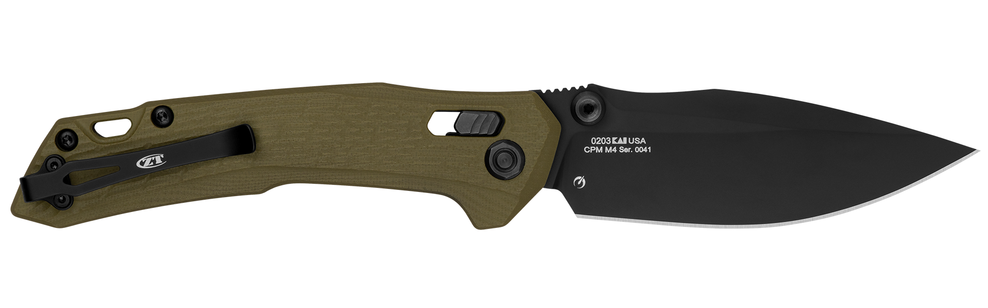 The Zero Tolerance 0203 is built to take on tough, everyday work with confidence. Proudly made in the USA, this rugged folder features a 4-inch CPM M4 blade with a black PVD coating for superior edge retention, durability, and corrosion resistance. Its 3D-machined G10 handle and thick steel liners deliver a secure grip and exceptional strength, while the DuraLock crossbar lock ensures solid, reliable blade engagement. Phosphor bronze washers provide smooth manual opening via dual thumb studs, and the custom full-length pivot bolt enhances durability while allowing adjustments with a 5/16" wrench. Finished with a reversible deep-carry Cerakote pocket clip, the ZT 0203 is a hard-use knife designed for serious cutting tasks—on the job, in the field, or anywhere performance matters.