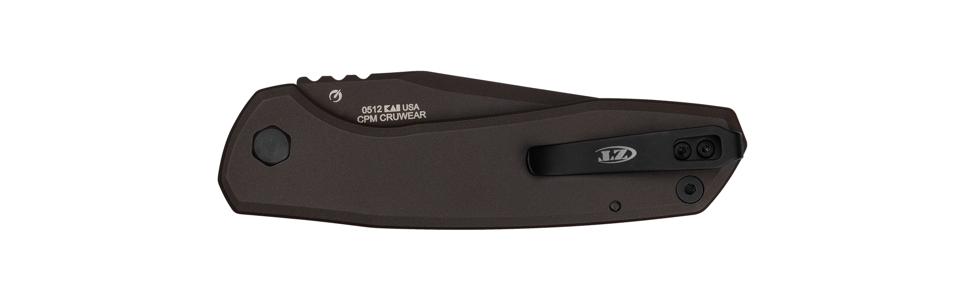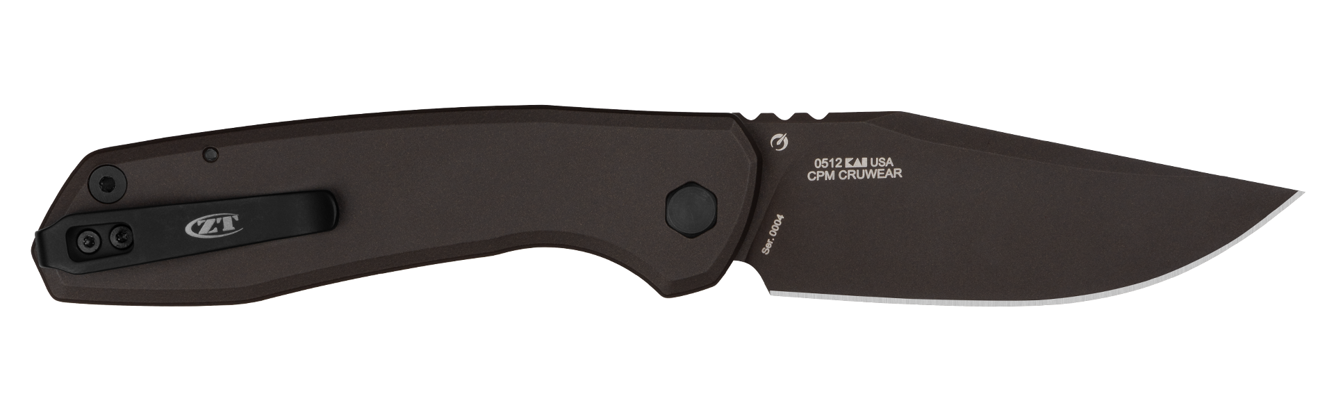 When performance matters and reliability is non-negotiable, the ZT 0512blk delivers. This premium automatic folder means business with a dark bronze CPM Cru-Wear clip point blade, offering outstanding edge retention, toughness, and ease of sharpening—perfect for demanding work environments. The blade deploys with a powerful, satisfying “thwack” at the press of a low-profile push button, designed to minimize accidental deployment. The Blak scale provides a warm, tactile grip, while the titanium back handle reinforces the knife's durability. Finished with rugged bronze hardware, a reversible deep-carry clip, and standout ergonomics, the 0512Blk is a dependable workhorse for any serious task.